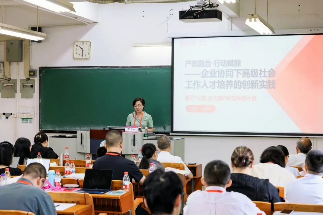 游晓庆副院长在“高级社会工作人才培养的实践探索与模式创新”分论坛第一单元作主题发言。她以“公益‘洁’力棒”研习共创计划为例,基于产教融合协同育人理念,系统阐述了“企业—院校—机构—学员”四维协同的高级社工人才培养路径,探索构建了“能力—行动—产出”三位一体的人才培养框架,为中国式现代化背景下社会工作产教融合生态圈的建设提供了具有实践意义的“深圳方案”。